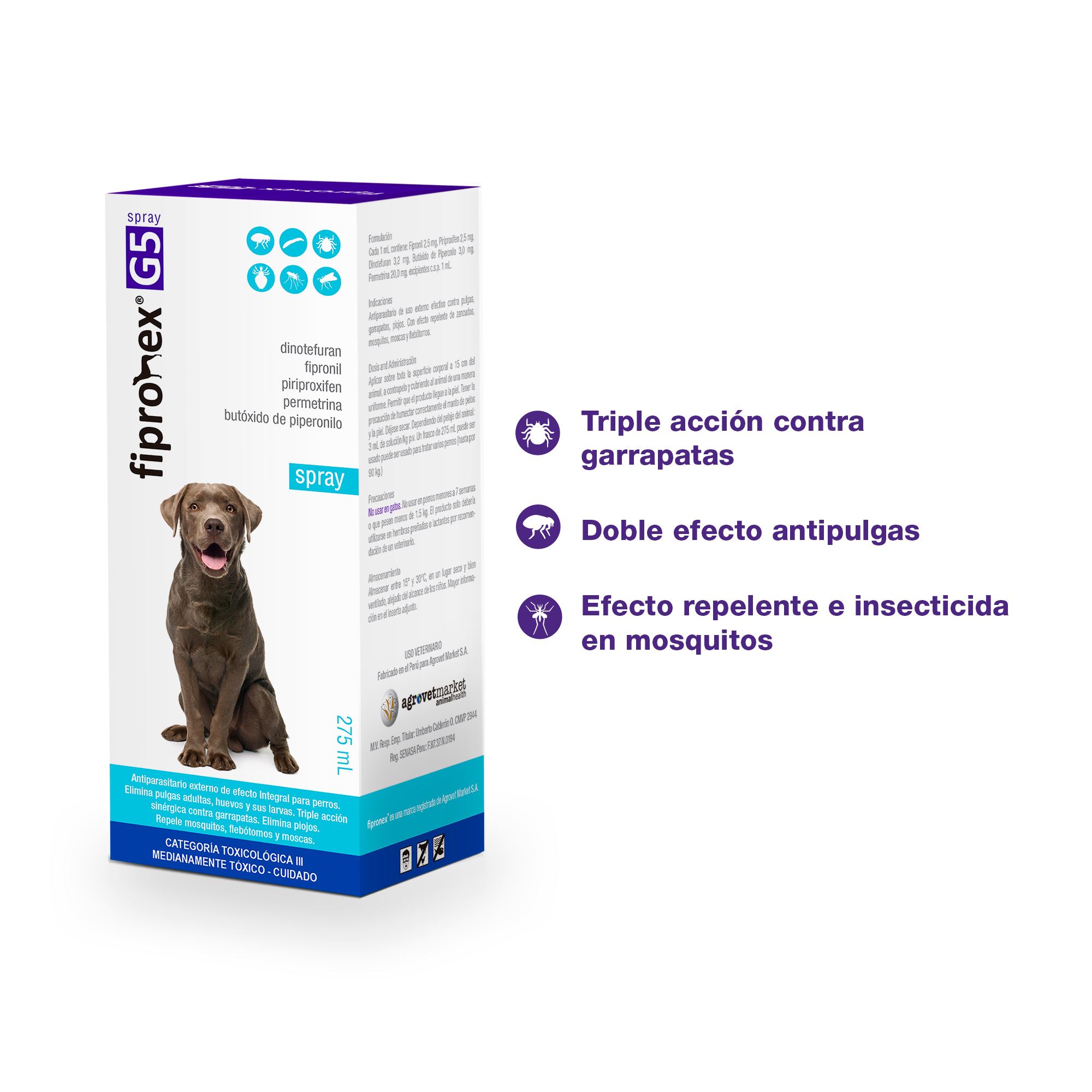 Fipronex G5 Drop On es el primer producto de una categoría nueva, los panectocidas, productos que poseen actividad contra todos los ectoparásitos importantes de los perros. Está indicado para la prevención y tratamiento de la infestación por pulgas, garrapatas, ácaros y piojos en perros; asimismo cuenta con efecto repelente de zancudos o mosquitos, moscas y flebótomos.