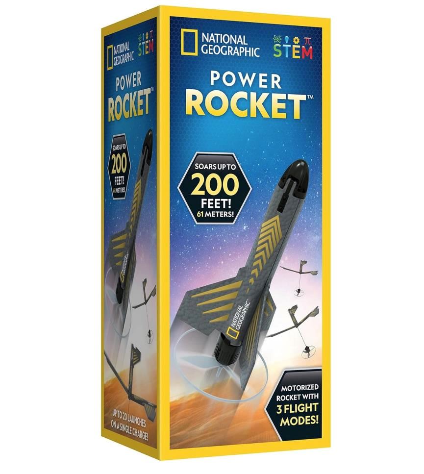 El Stomp Rocket de National Geographic permite lanzar cohetes a hasta 100 pies. Con una almohadilla de lanzamiento doble y un sistema de válvula de aire, los niños pueden lanzar dos cohetes a la vez o trabajar en equipo para alcanzar grandes alturas.